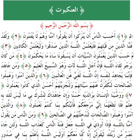 مقتطفات دينية سورة العنكبوت كاملة مكتوبة
