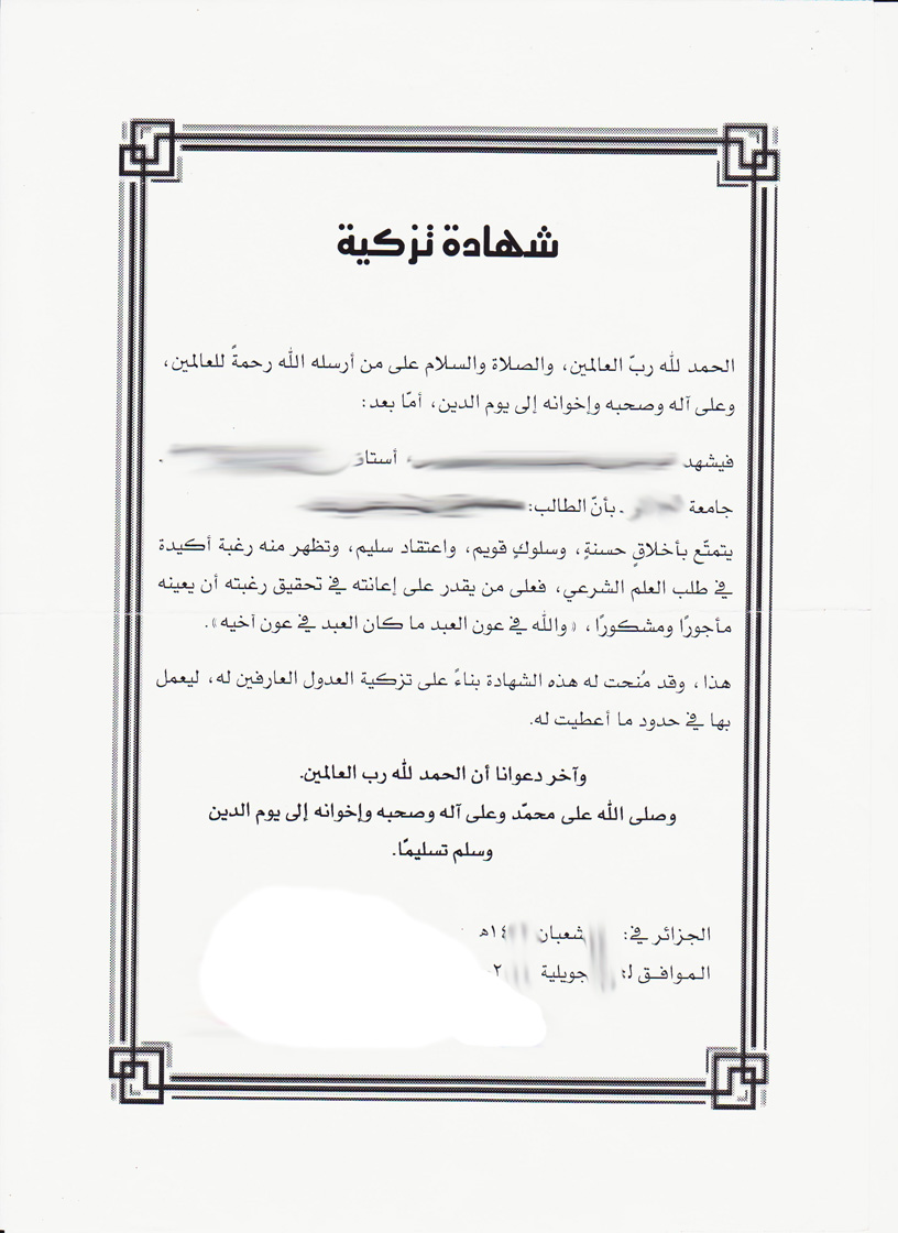 نموذج للتزكية لطلب كثير من الإخوة الطلاب المصريون بالجامعة الإسلامية Facebook