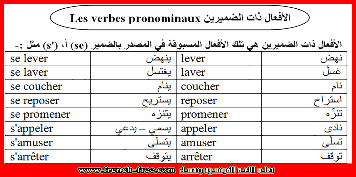 تعليم اللغات ما هي الأفعال ذات الضميرين باللغة الفرنسية كيف ومتى تستخدم بشكل صحيح أمثلة وشرح بالعربية Les Verbes Pronominaux