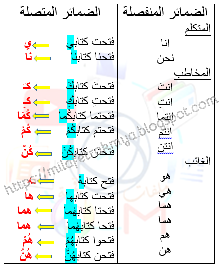 أنواع الضمائر المتصلة والمنفصلة في اللغة العربية ملزمتي