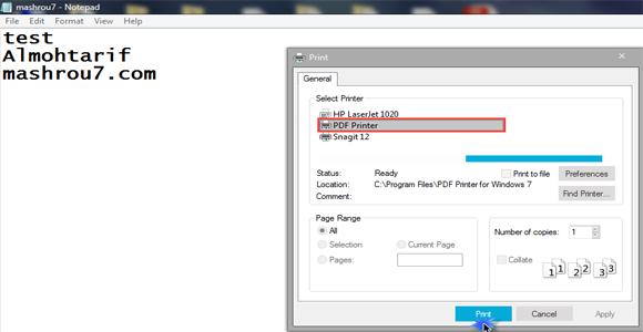 طريقة إضافة طابعة Pdf Printer لويندوز 7 لإنشاء ملف Pdf بدون برامج