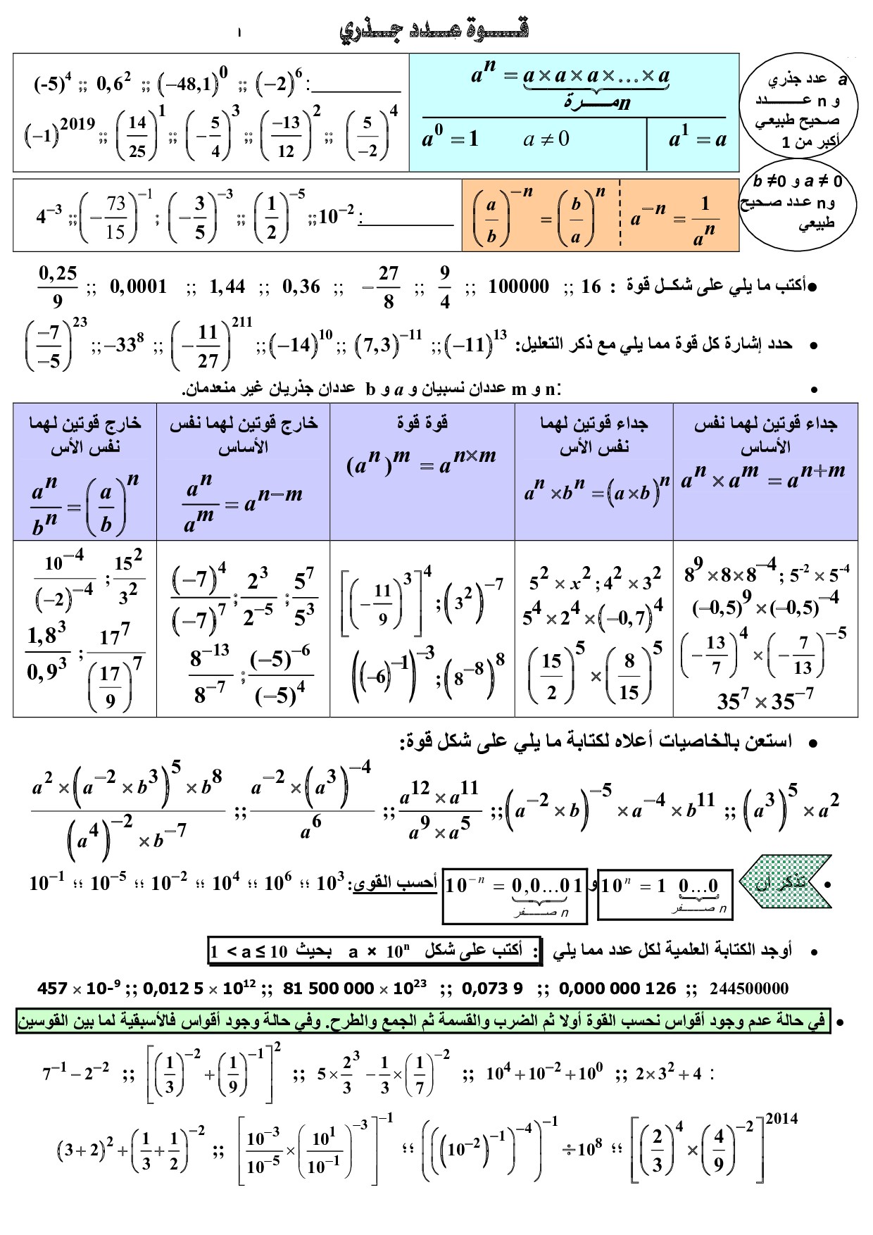 قوى عدد جذري ملخص الدرس 1 Alloschool