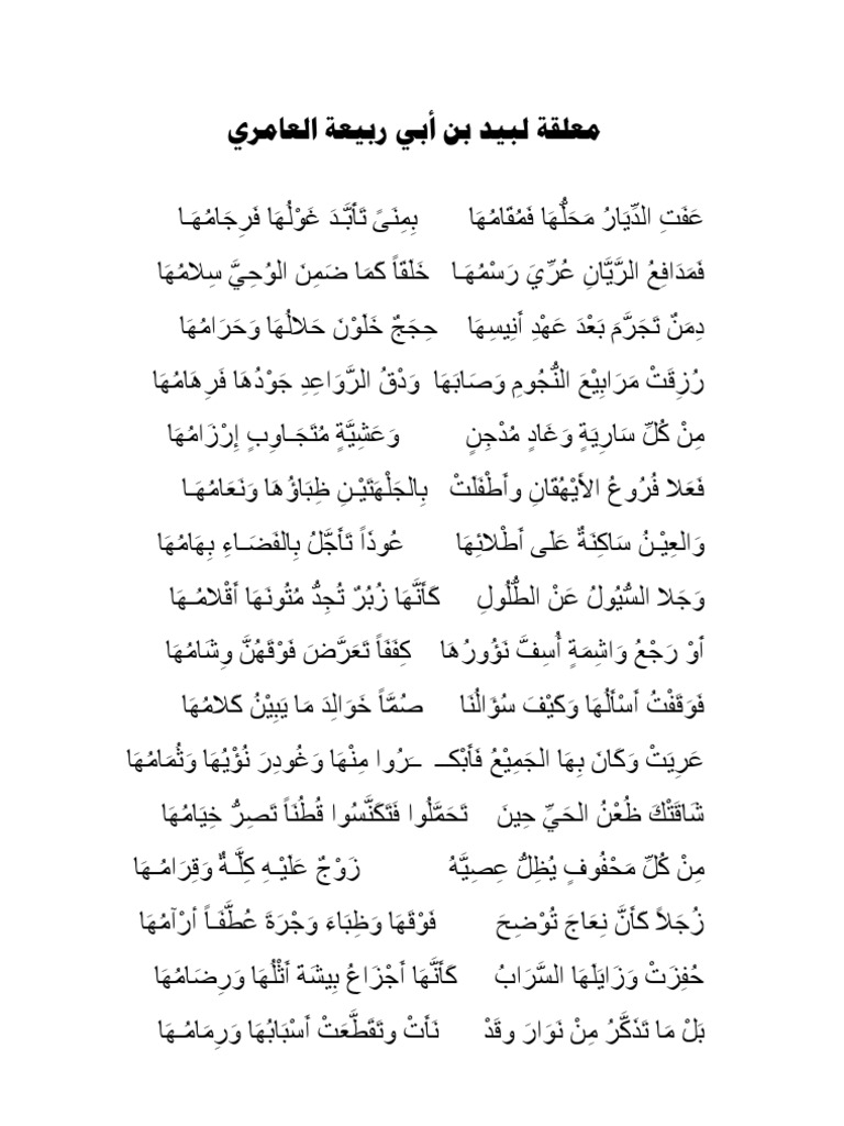 ابن جلا On Twitter يقول أبو عقيل لبيد بن ربيعة بن مالك العامري ع ف ت الد يار م ح ل ه ا ف م ق ام ه ا ب م ن ى ت أ ب د غ ول ها ف ر ج ام ه ا Https T Co Nnd2x7qrzu